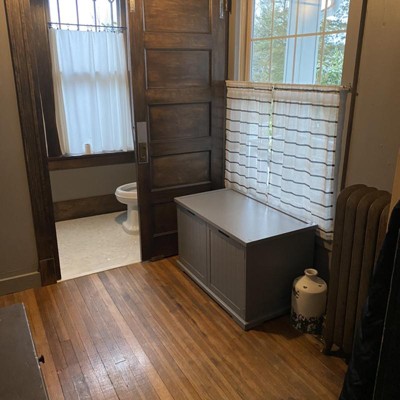 - Washroom bench hides all litter messes and keeps your kitty litter box hidden