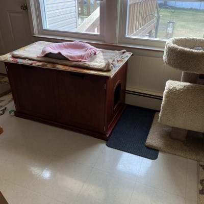 I really like this cat littler box. With a small apartment I didn’t like the litter box out in the open. And my cats sit on it to watch the birds! Very easy to assemble.