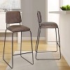 The Mesa Barstool features a sled based design that is comfortable and compact. Fully welded, cold-rolled steel is finished in beautiful gun-metal that resists scratches and forms a sturdy foundation for a lightweight and durable chair. The footrest not only provides comfort, but also adds strength and durability to the stool. The cocoa brown faux leather upholstered seat and back are shaped for comfort. Your purchase includes one bar stool.