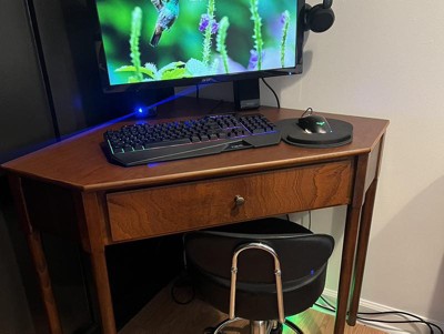 Overall a beautiful desk, however many of the holes were severely over pre-drilled, causing the included screws to not fully tighten when I assembled. It could have been a one-off though. Thankfully I build a lot of custom furniture and crafts so I just swapped the screws out for slightly larger ones and it solved the problem. Beautiful finish and look, perfect size for my son’s room- the corner fill design keeps it from over crowding his room.