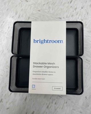 It's easy to keep all of your notebooks, planners, stationery and other office supplies neatly sorted with this Mesh Desk Organizer from Brightroom™. Crafted from steel mesh for a lightweight, durable frame, this organizer includes four pieces in different sizes to hold different types of items. The pieces can be stacked atop each other to save space on your desktop or separated and placed inside drawers, giving you different options for keeping your workspace organized. Great for both at-home and office workers, this organizer's black finish pairs easily with any existing decor color scheme.