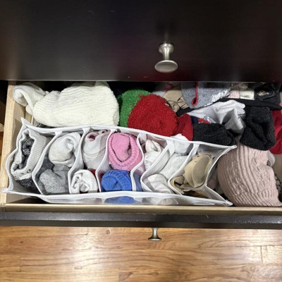 [This review was collected as part of a promotion.] This 4-pack of mesh drawer organizers was the perfect solution to my sock drawer. I always feel like my sock drawer is so overwhelming but now it is organized and I’m able to easily see which pair of socks is in there that I need. I can’t wait to buy more of these to organize other places in my home. They are a bit flimsy since they are mesh but once you put stuff in them they hold up really well. I received an incentive to write this review.