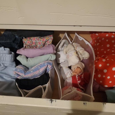 [This review was collected as part of a promotion.] Having drawer organizers for child apparel is AMAZING! It makes looking for certain outfits so much easier and the drawers don't look cluttered either. These mesh organizers are a bit stiff, as you can see in the photo, they stay curved in. I'm hoping through time they'll become more straight. The material used seems better for cleaning. The price point is good for what you receive. I received an incentive to write this review.