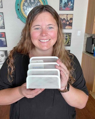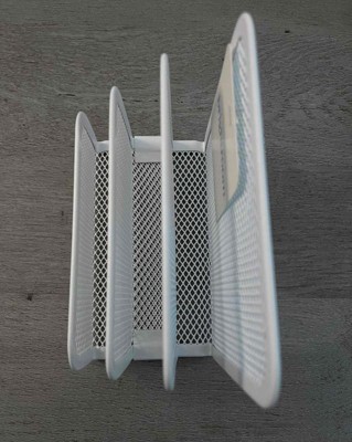 Keeping your mail, bills and other papers sorted is a breeze with this Mesh Letter Sorter from Brightroom™. Featuring a steel mesh frame with three ascending rows, this letter sorter provides you with plenty of storage space and makes it easy to keep different types of papers separate. The white finish pairs easily with any room's existing color scheme, and the tiered design adds visual interest — and best of all, it comes pre-assembled to save you precious time.