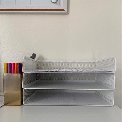 Mesh Stacking Letter Tray with Wide Side Opening White - Brightroom™: Steel File Organizer & Holder, No Assembly Required
