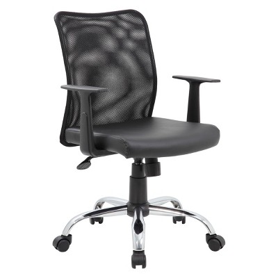 The attractive and comfortable mesh task chair in black is designed with a sturdy 25 inch nylon base with 2 inch dual wheel castors for a smooth roll and seat you’ll never want to get out of. The chair also features adjustable arms and a pneumatic gas lift that allows for easy adjustable height making sure it is the perfect fit for most everybody. It also has top of the line features such as tilt tension and an upright lock and a weight capacity of 275 lbs.