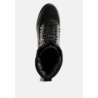 These faux leather boots featuring a croco textured detail all over make a stunning choice. The pointed toe and stiletto heel add to the style appeal. Team these boots with everything right from dresses, trousers or jumpsuits. Type: Boots Upper Material: Croco Faux Leather Outer Sole: TP Rubber Closed Pointed Toe Front Lace Up Detail Zipper Closure Stiletto Heel Comfortable Cushioned Insole Heel Height: 4 inches SH5796