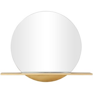 Olivia & May Metal 1 Shelf Wall Mirror Gold : Round, Glam Style, No Assembly Required