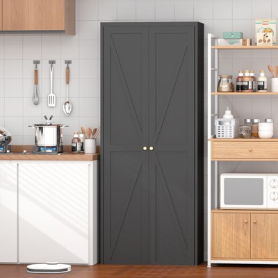 Metal 2-Door Adjustable Storage Cabinet, Tall Steel Pantry for Kitchen, Living Room, Dining Room & Office