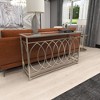 - •Metal silver console table has a rectangle mirror surface with oval metal structure in an open style frame