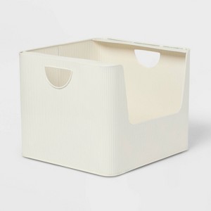 Bring convenient storage to your living room or linen closet with this Open Front Large Metal Bin from Brightroom™. Made from metal in an ivory hue, this square storage bin features a spacious design with an open-front cutout to make it easy to stash away toys, blankets and more. Plus, the side cut-out handles on either side make it portable and easy to carry around the home. Suitable to place on any shelf or closet, this ivory metal bin mixes well with a variety of decor styles and color palettes.