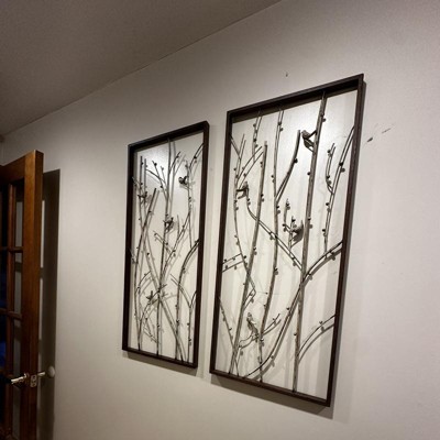 Metal Bird Wall Decor Set of 2 Black - Olivia & May: Iron Artwork, Farmhouse Style, Animal Subject, Vertical Display