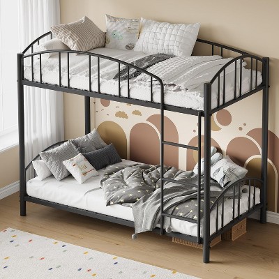 Metal Bunk Bed Twin Over Twin, with Arched Guardrail and Safety Ladder, Safety Ladder, Space-Saving Design, No Box Spring Needed