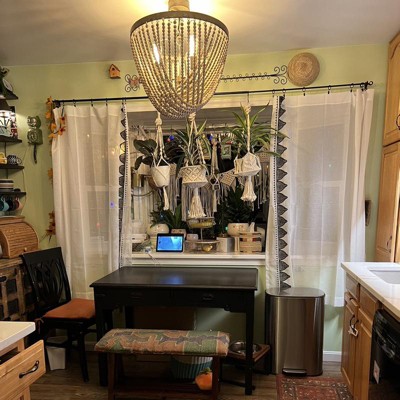 Metal Chandelier with Draped Wood Beads Off-White -Storied Home: UL Listed, No Assembly Required