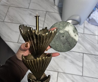 [This review was collected as part of a promotion.] Super nice piece of holiday decor- it’s heavy duty, and you can tell it will stand the test of time! The gold metal has a beautiful finish to it, and the base is a pretty dark green marble. I will say, it’s odd that the top of the base is finished marble, but the side has a cloudy unfinished look. When it’s on a shelf, I don’t think anyone would notice - but I just found it odd! It’s a classy, beautiful piece to add to my holiday decor! I received an incentive to write this review.