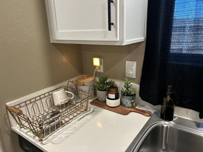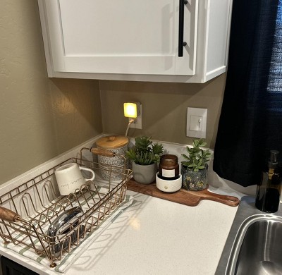 A: Hello Liz- We appreciate your interest in this Metal Drying Rack Copper Finish. It is designed to hold cups, mugs, wine glasses, and more.However, it does not include a drip tray or any drainage system to catch water runoff. You may place a drying mat or tray beneath the rack to prevent water all over the counter. We know you will enjoy it. – Auria