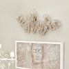 - Rustic floral wall sculpture features a white gray and metallic gold iron finish