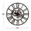 Metal Gear Wall Clock Black - Olivia & May: Industrial Style, Exposed Mechanism, 32" Diameter