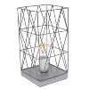 This metal 10" table lamp with a retro inspired shade will add ambiance and style to any room in your home! With a trendy cut out design this lamp illuminates beautifully. Undoubtedly the perfect accent piece to your home, this lamp will not disappoint! **HELPFUL TIP: To get the complete vintage look, we recommend using a decorative Edison/Vintage bulb (not included). **
