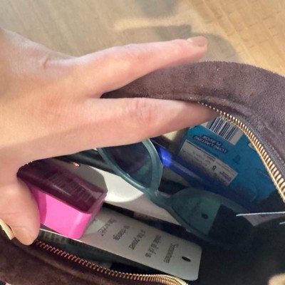 [This review was collected as part of a promotion.] This purse is truly so cute! I went with the brown color as I felt like it was more versatile with my wardrobe for the fall, and I cannot be happier with my selection. The material is a soft suede and feels very durable and that it will hold up Without any problem with lots of use this fall inside the purse. There is an apple and no, but I am disappointed there is not a separate smaller zipper to place cash or cards in overall I am very happy with this purchase! I received an incentive to write this review.