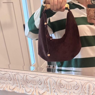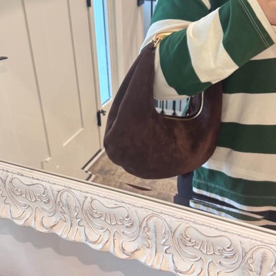 [This review was collected as part of a promotion.] This bag is trendy and looks more expensive than the price. Target does such a good job nailing trendy pieces at an affordable price point. The crescent style provides for a lot of room to hold plenty of things. You can definitely fit your phone and lots of other small accessories in here. The only thing I don’t love is it’s not big enough to carry on your shoulder so you have to hold the bag lower on your arm or by the handle. I received an incentive to write this review.