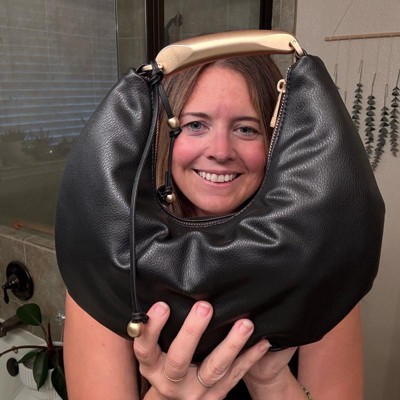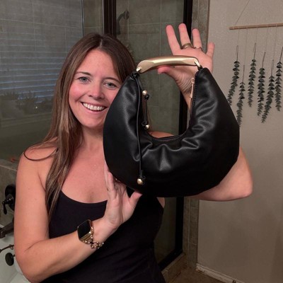 [This review was collected as part of a promotion.] I can’t get enough of this black metal handle crescent handbag from A New Day. All the tiny details throughout this bag make it really stand out and the quality is fantastic and looks like an expensive designer bag. The gold hardware has more of pink tone to it and looks like rose gold which initially drawer me to the bag and it’s so pretty in person. It’s a nice size that can fit a wallet, phone and any other items needed. I received an incentive to write this review.