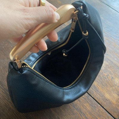 [This review was collected as part of a promotion.] I purchased this metal handle crescent handbag from A New Day because I love black purses, and I wanted something a little different. I wasn’t sure if I would like having a little purse without a shoulder strap, but I really like this! It is super fashionable and it seems to be very well made. Also when you open up the zipper there is much more room in there than it appears. Great purse! I received an incentive to write this review.
