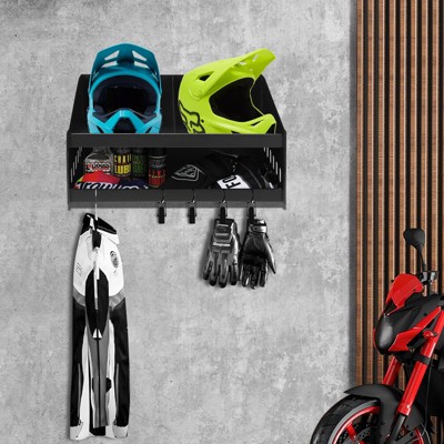 Aluminium Double Helmet Placement Rack, Triple Tray for Shops, Garages, Storerooms - Stores 3 Helmets - Gloves Goggles,Sides for Hanging Clothes