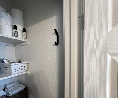 Love the sturdiness and look of this hook! Used three of them on the inside of our front closet for added storage. Can hold jackets & bags filled with somewhat heavy loads. Definitely a winner in my book! Pro Tip: we have hollow doors and used specific anchors for that purpose instead of what came packaged with the hooks