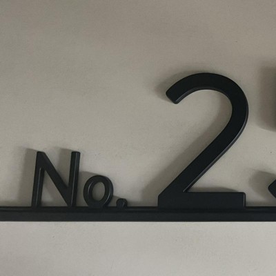 - Matte black house number plaque