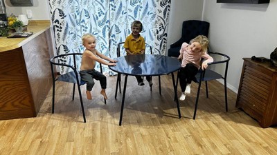A: Hi Ianypaige - This metal table has a sleek design in a glossy metallic finish, it brings stylish utility to their room decor. But also making it easy to clean. - Johnay