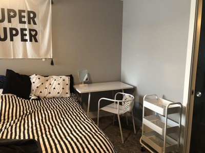 - Metal desk brings a functional update to their room