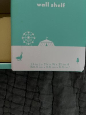 A: Hello Maizy - We appreciate your interest for this item. The Metal Luxe Kids' Wall Shelf Gold is 24 inches long. I hope it helps - Juliette.