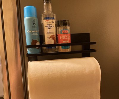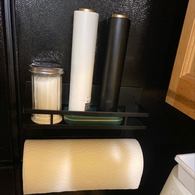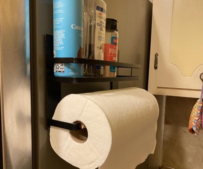 This is so perfect! I have a small kitchen and there is no logical location for paper towels. This works so well. The magnet is strong, it keeps the paper towels and other items easy to reach but off my limited counter space. I don’t need to drill into walls or cabinets in a rental. And it looks great. I happened upon this in store and am just delighted.