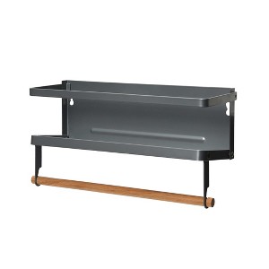 - Attach to any metal or stainless steel surface as a space saving storage alternative, or mount to the wall with integrated key holes; Display spices, oils, or everyday cooking and cleaning essentials on the shelf, and utilize the wooden dowel for easy access to paper towels, plastic wrap, or foil
