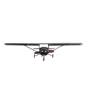 Enhance the home decor with this metal plane wall decor in a distressed black color. This wall decor features a metal frame that resembles a plane with wings and propellers. The metal plane has a distressed black finish that gives it an aged and authentic appearance. The metal plane features details such as windows, doors, and rivets that add texture and interest to the space. The wall decor has an integrated hanging mechanism that hangs it horizontally with ease. It has a long and narrow shape that fits well in any area, such as the office, living room, or little boy's room. This wall decor is perfect for adding a fun and adventurous touch to the walls. It is suitable for any industrial, rustic, or vintage style of home decor, as it creates a bold and dynamic look. This wall decor measures 75.5 inches long and 15 inches high. These wall décor pieces are a fun and unique way to add a touch of nature to the home.