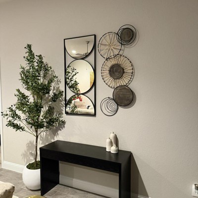 - •This abstract wall decor plays with the neutral colors black, beige, brown, and bronze