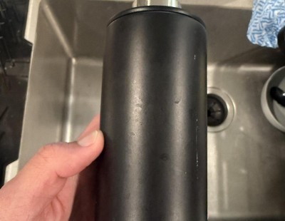 - Black soap pump lends modern flair to your kitchen or bathroom decor