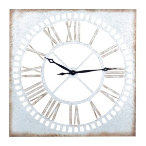 - •This square wall clock features a pierced design clock face with cut out design and distressed accent