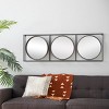 - This minimalist wall mirror features 3 separate round mirror panels in independent compartments