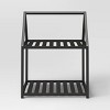 Keep the piles of wood nicely organized and handy with the Metal Wood Storage A Frame from Threshold™. Designed in an A shape, this wood storage frame comes with two shelves to help provide ample space for the logs. Perfect for places with cold winters, the metal-frame wood storage works well in both indoor or outdoor space.