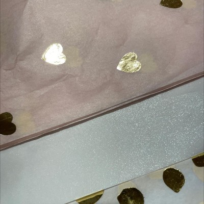 submitted byMW - 2 years agoTarget staff supportA: In my package, there were seven of the pink with gold hearts, and seven of the white with gold polkadots. The gold polkadots are kind of irregular, so they’re more interesting looking than regular polkadots. The white sheets are actually not plain white, they have a sort of pearly sparkly finish on one side.