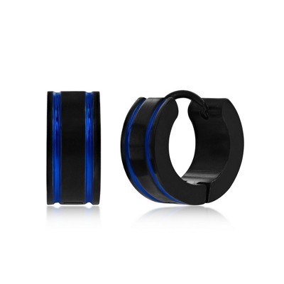 Metallo Mens Stainless Steel 11.5mm Polished Hoop Earrings - Black Plated - Black - 2 of 3Metallo Mens Stainless Steel 11.5mm Polished Hoop Earrings - Black Plated - Black - 3 of 3