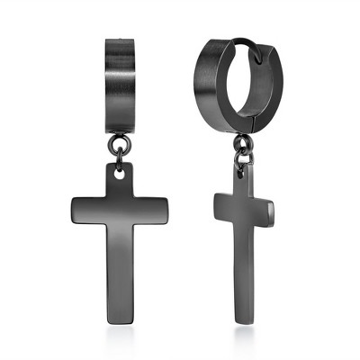 Metallo Mens Stainless Steel, 12mm Square Huggie Earrings - Gold Plated - Black - 1 of 3