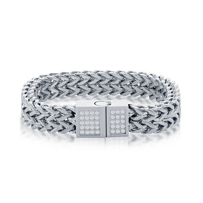 Metallo Mens Stainless Steel Anchor ID Franco Chain Bracelet - Silver - 8.5 Inch - 1 of 4