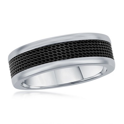 Product Name: Metallo Mens Stainless Steel Black and Blue CZ Ring - Black - Size 13 - BLACK, BLUE, CZ, RING, BAND, MENS, STEEL