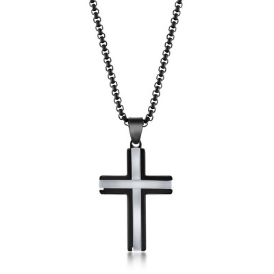 Product Name: Metallo Mens Stainless Steel Brushed Cross Necklace - Gold Plated - Silver - 24 Inch - brushed, matte, cross, gold, silver, steel, mens