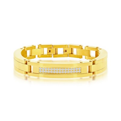 Metallo Mens Stainless Steel Gold & Silver Link CZ Bracelet - Gold - 8.5 Inch - 1 of 4