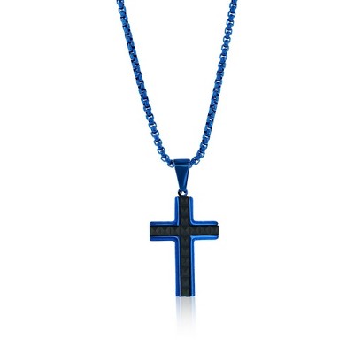 Product Name: Metallo Mens Stainless Steel Polished Cross Necklace - Blue Plated - Blue - 24 Inch - blue, cross, pendant, necklace