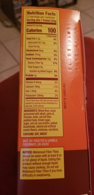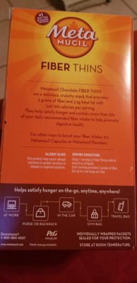 Did you know that less than 1 in 10 Americans get enough fiber from diet alone? Help close that gap with Metamucil Fiber Thins! Metamucil Fiber Thins are a great fiber snack for adults and kids age 4+ who want to increase their daily fiber intake. Metamucil Fiber Thins help support digestive health with plant-based psyllium husk fiber. Make this fiber-filled snack part of your daily routine. Metamucil Fiber Thins go great with a cup coffee or even crumbled over your morning yogurt! Be sure to enjoy Metamucil Fiber Thins with a full glass of liquid to help the psyllium husk fiber do its magic! Metamucil Fiber Thins are a great source of fiber with 5g dietary fiber and only 100 calories per serving. Try each of our three Metamucil Fiber Thin flavors: cinnamon spice flavor, chocolate, apple crisp! A tasty snack for kids and adults alike! From the makers of #1 doctor recommended fiber brand, trusted for over 90 years.